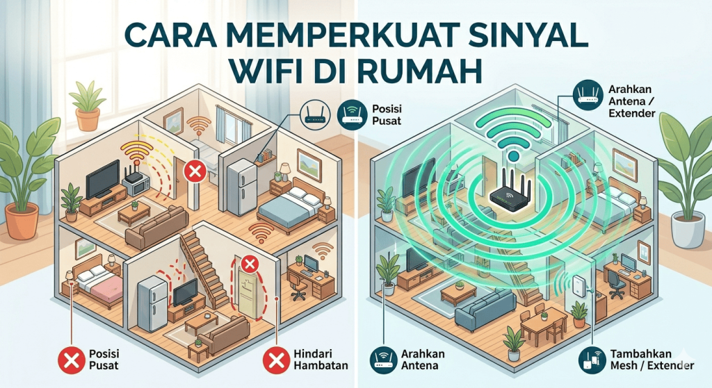 Sinyal WiFi yang lemah sering membuat koneksi internet menjadi lambat dan tidak stabil. Hal ini biasanya terjadi di rumah dengan